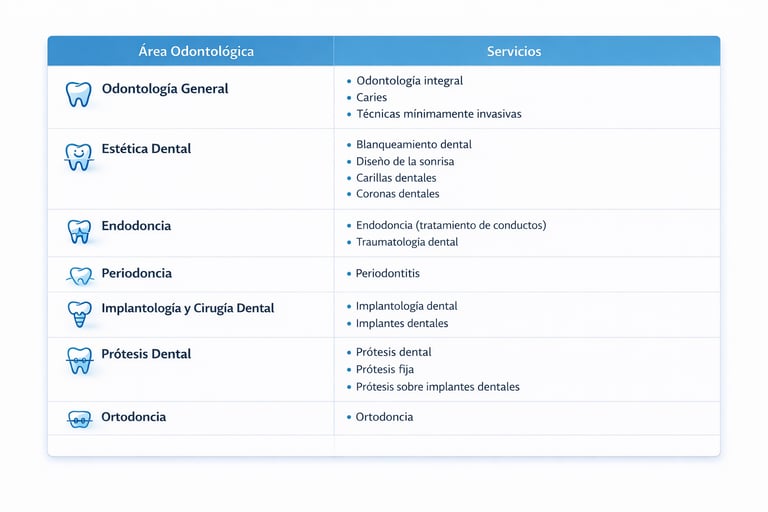 Ofrecemos una atención integral que abarca desde tratamientos preventivos hasta procedimientos especializados, permitiendo resolver distintas necesidades dentales en un solo lugar.